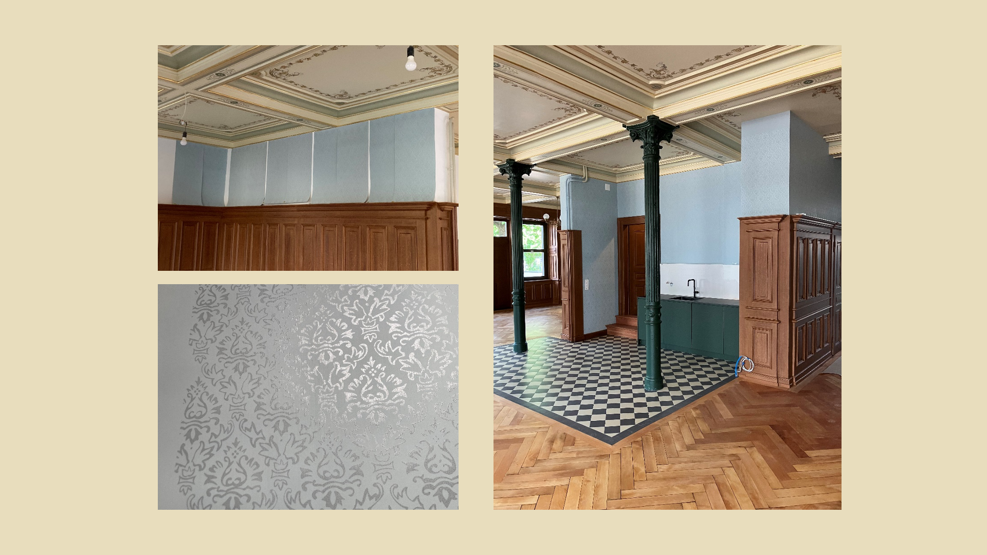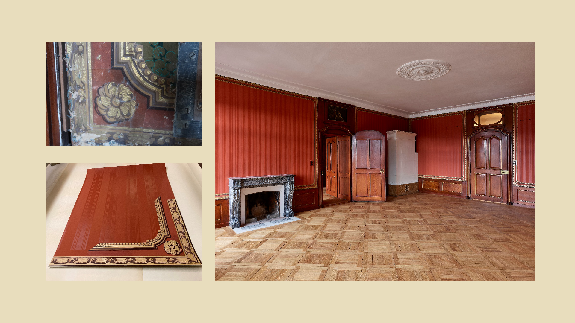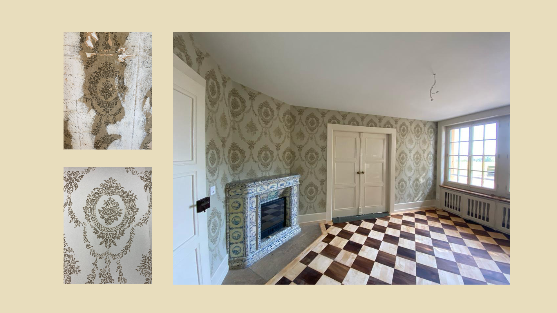 In sorgfältiger Rekonstruktion entstehen neue Wandbeläge: gefertigt in handwerklicher Manier, mit einem Gespür für historische Haptik und Oberflächenwirkung.
