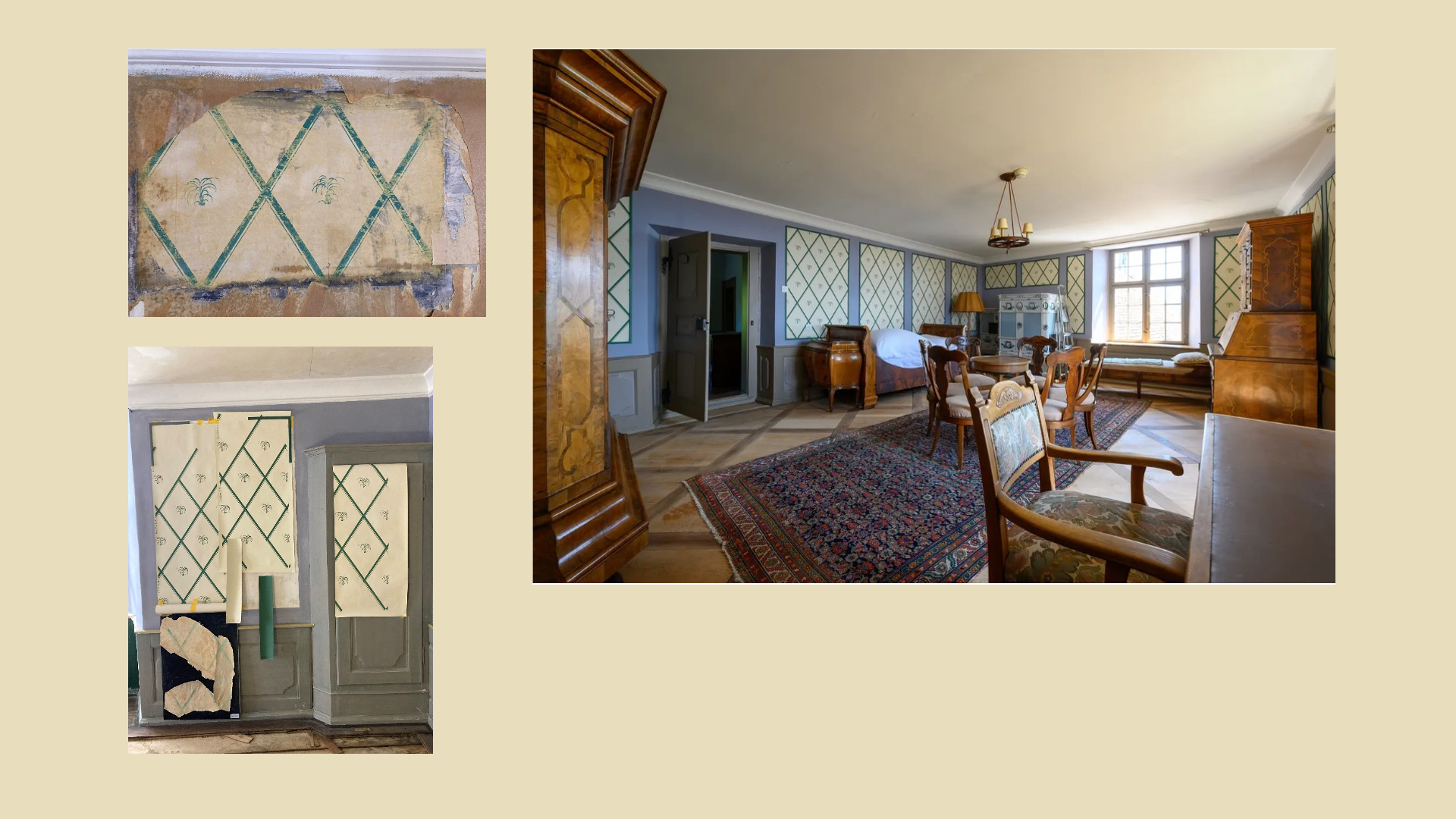 Bei der Restaurierung historischer Bausubstanz – etwa in Schlössern oder Herrschaftshäusern – treten mitunter verborgene Zeugnisse dekorativer Gestaltungskunst zutage: Fragmente ornamentaler Wandverkleidungen und Farbspuren. Diese Funde sind Erzähler vergangener Epochen – und zugleich Ausgangspunkt für historische Gestaltungskonzepte.